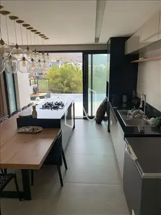 Sala ampla para mais ambientes, conjugada com cozinha.