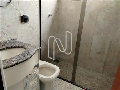 1 banheiro social com armário e box em blindex